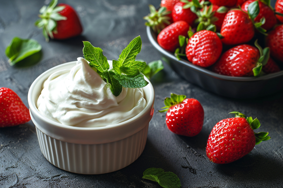 딸기: 신선한 딸기는 높은 비타민 C 함량을 가지고 있으며, 1/2컵 분량에 약 49mg의 비타민 C가 들어 있습니다.